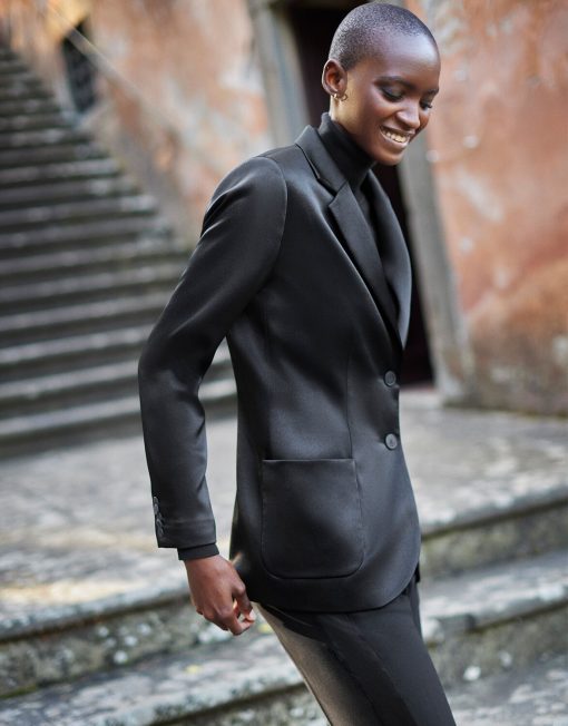 Carey is our bestselling blazer. Combine her with one of our pants for the perfect suit. She also looks great with one of our tops, skirts or dresses. A classic blazer like Carey is a true investment piece! Note: this delicate fabric requires careful handling, avoid contact with rough or sharp objects to prevent damage.