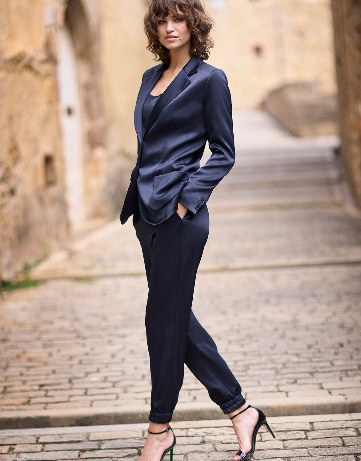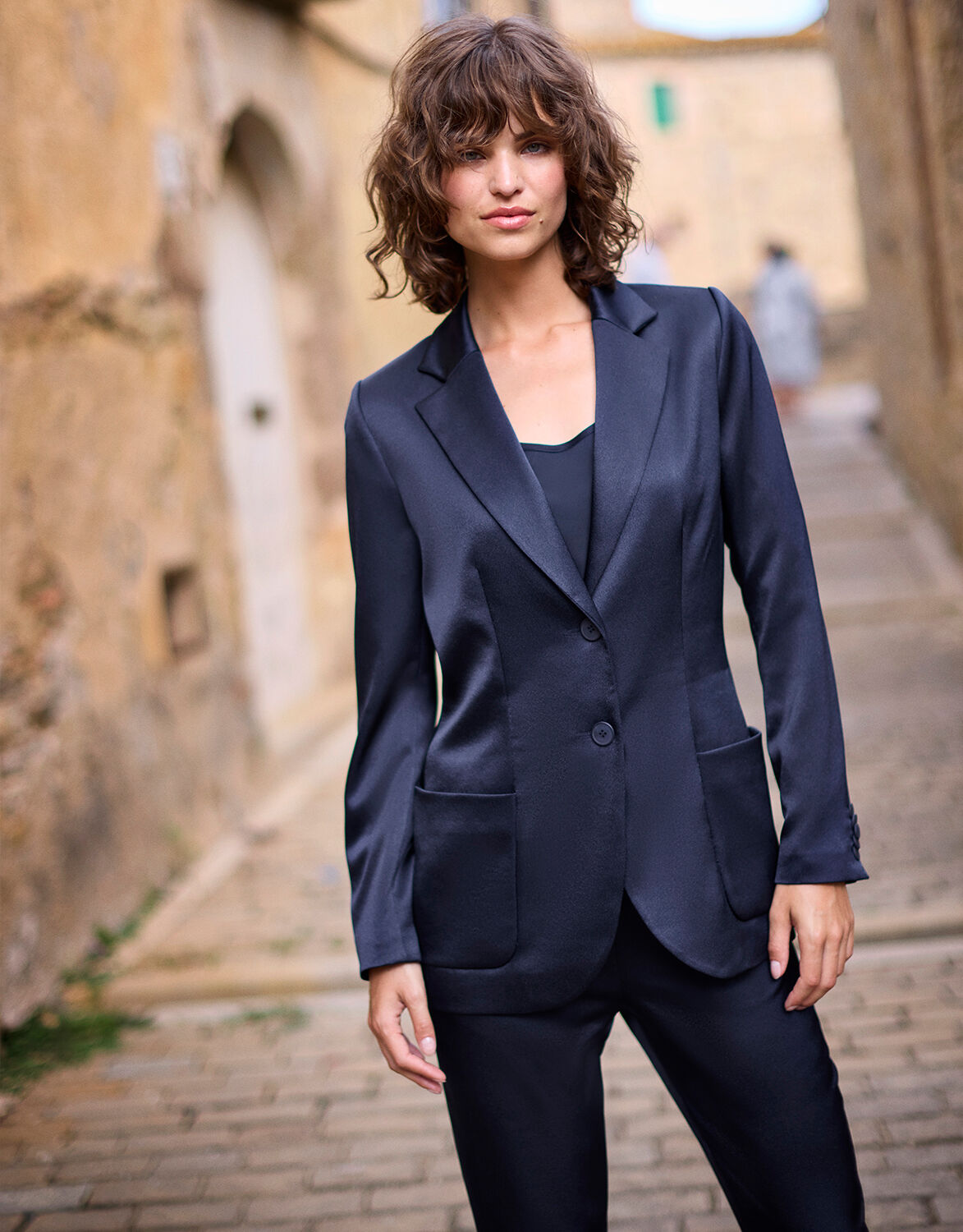Carey is our bestselling blazer. Combine her with one of our pants for the perfect suit. She also looks great with one of our tops, skirts or dresses. A classic blazer like Carey is a true investment piece! Note: this delicate fabric requires careful handling, avoid contact with rough or sharp objects to prevent damage.