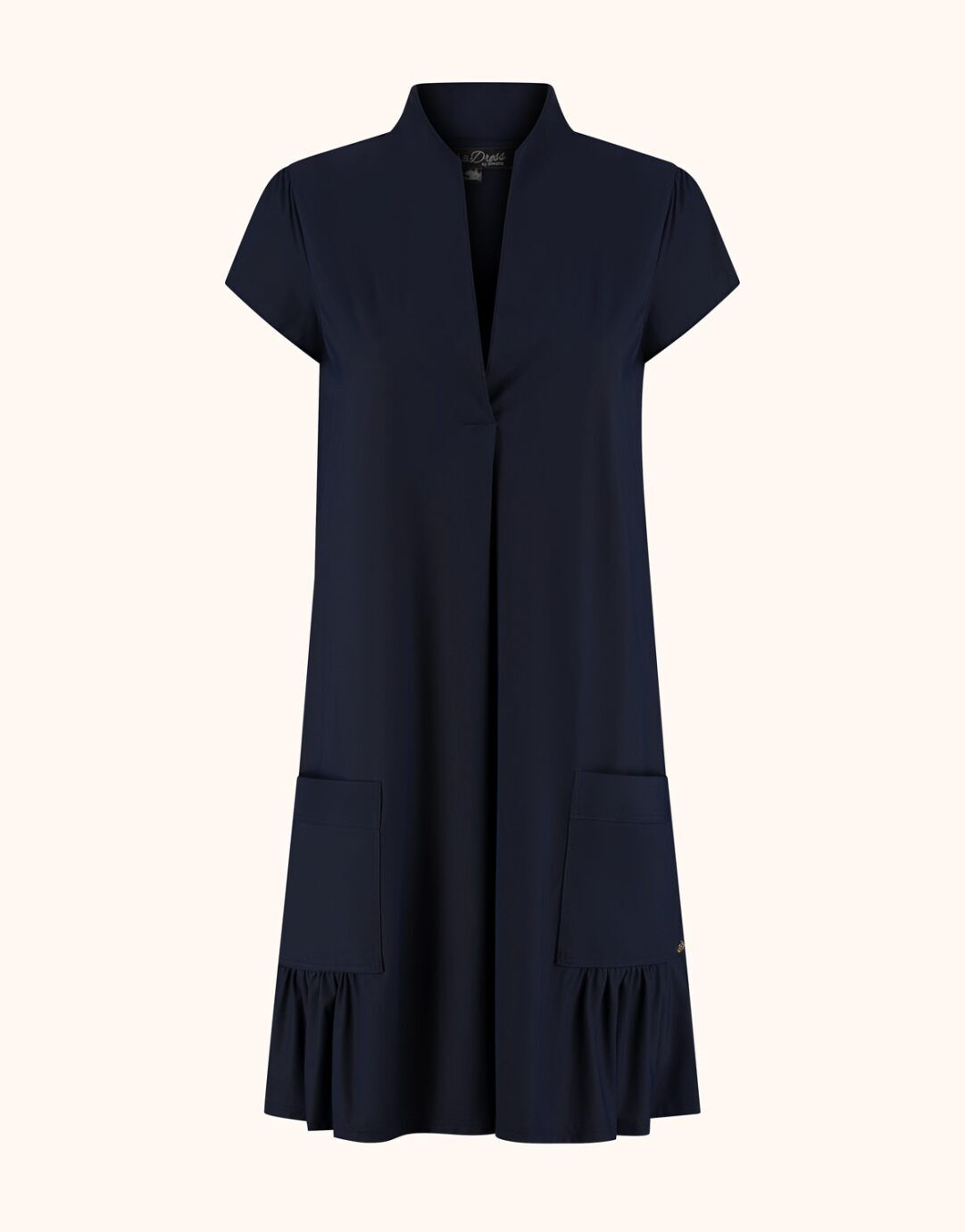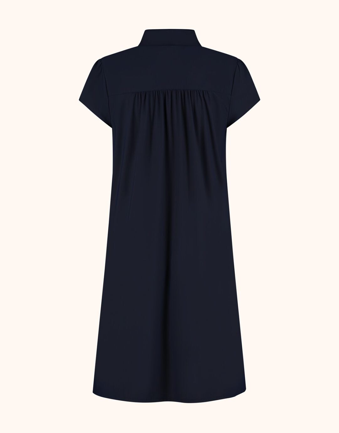 Say hello to Liana! She is made from our iconic Italian travel jersey fabric. All our travel jersey styles are made from recycled yarn in an eco-friendly production cycle, read more here! The relaxed fit, cap sleeves, and subtle V-neckline make it effortlessly flattering, while the patch pockets with delicate gathered details add a touch of fun. Liana is your go-to for warm days when you want to feel cool, carefree, and completely yourself.