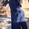 Summer chique with our maxi dress Margot! She is made from our iconic Italian travel jersey fabric. All our travel jersey styles are made from recycled yarn in an eco-friendly production cycle, read more here! She’s very comfortable to wear and easy to wash and care. The sash accentuates the waist and creates a beautiful, slimming effect. Wear Margot with your favorite pair of slippers or high heels to look classy from dusk till dawn!