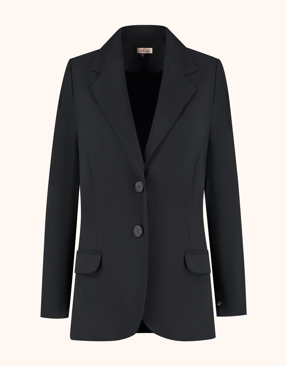 Marguerite is a modern classic; she’s a timeless blazer with a feminine fit, made from our heavy jersey lycra. Our travel jersey styles are made from recycled yarn in an eco-friendly production cycle, read more here! The sharp lines and lightly tailored silhouette create an elegant look. Pair her with our flared leggings in a matching color, like Osaka or Tulum, for an outfit that’s both stylish and comfortable. Perfect for the office, on the go, or any casual-chic moment.