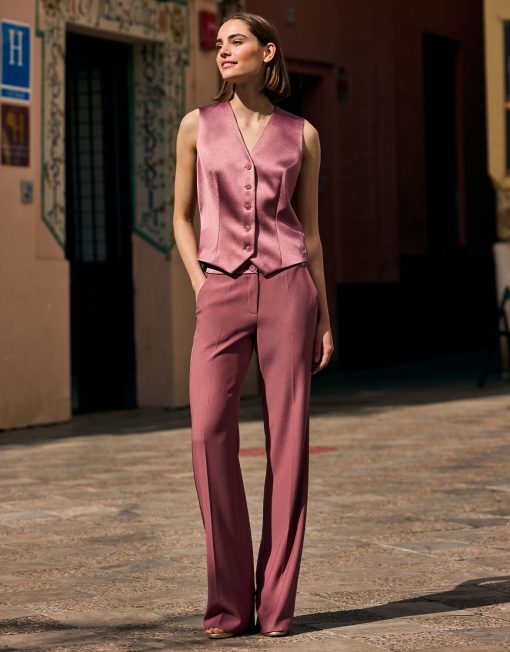 These straight-leg pants will effortlessly take you from desk to dinner. Palma is made of a smooth crêpe satin, detailed with satin accents. We’ve added elastic in the waistband for extra comfort. Complete your look with one of our blouses and a blazer. Note: this delicate fabric requires careful handling, avoid contact with rough or sharp objects to prevent damage.