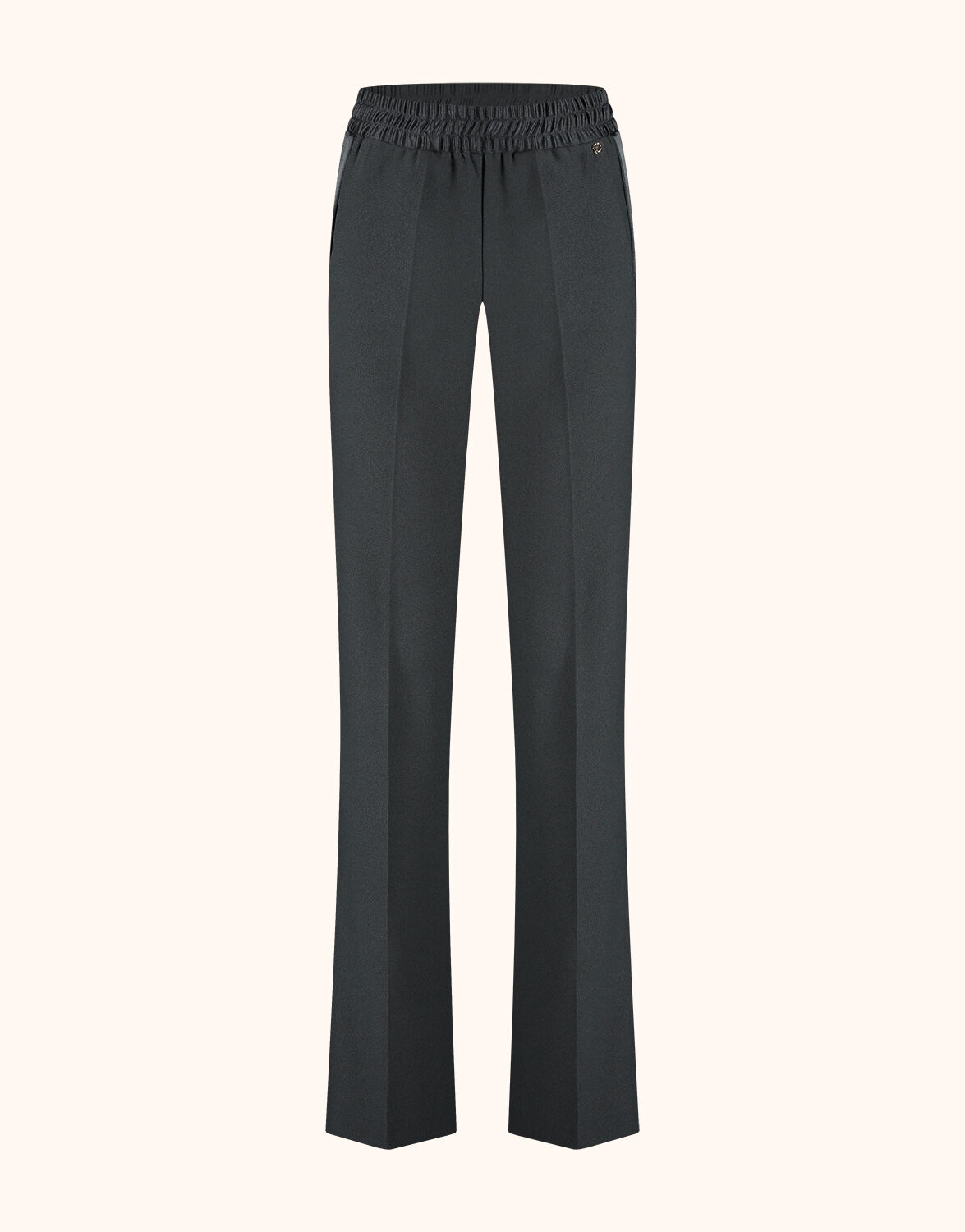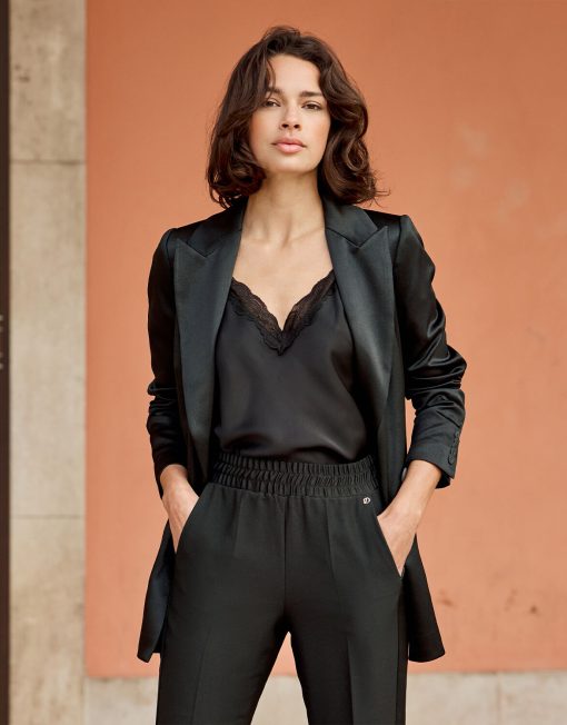 These straight-leg pants will effortlessly take you from desk to dinner. Porto is made of a smooth crêpe satin fabric, detailed with satin accents and an elastic waistband. Complete your look with one of our matching blouses, tops and/or blazers. The styling possibilities are endless. Note: this delicate fabric requires careful handling, avoid contact with rough or sharp objects to prevent damage.