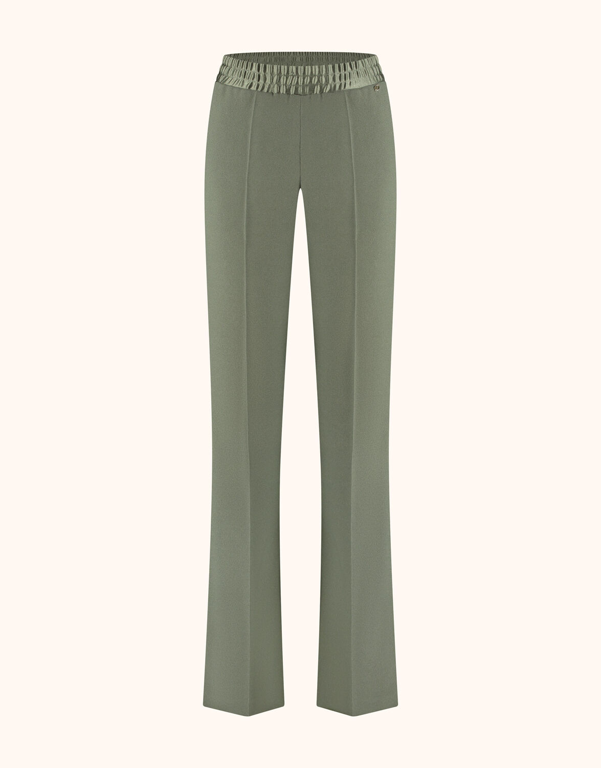 These straight-leg pants will effortlessly take you from desk to dinner. Porto is made of a smooth crêpe satin fabric, detailed with satin accents and an elastic waistband. Complete your look with one of our matching blouses, tops and/or blazers. The styling possibilities are endless. Note: this delicate fabric requires careful handling, avoid contact with rough or sharp objects to prevent damage.
