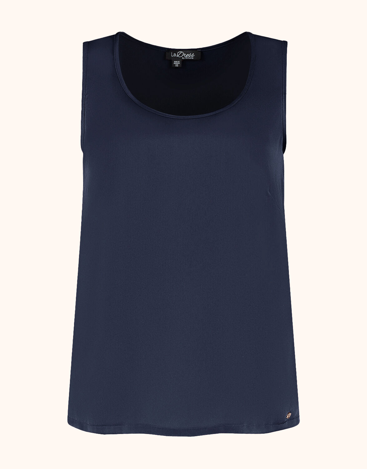 Zelda is a simple yet stylish sleeveless top crafted from flowy satin. She has a round neckline and a longer back to create a comfortable fit. Wear her underneath your blazer or with one of our skirts on a sunny day. Note: this delicate fabric requires careful handling, avoid contact with rough or sharp objects to prevent damage.